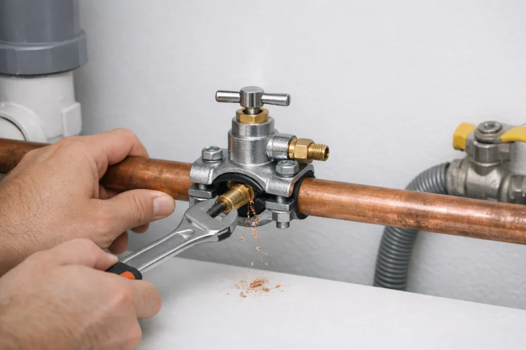 Le robinet autoperceur gagne sur la rapidité de pose. En dix minutes, l’affaire est classée sans couper le tube. C’est l’outil idéal pour un dépannage rapide ou provisoire.